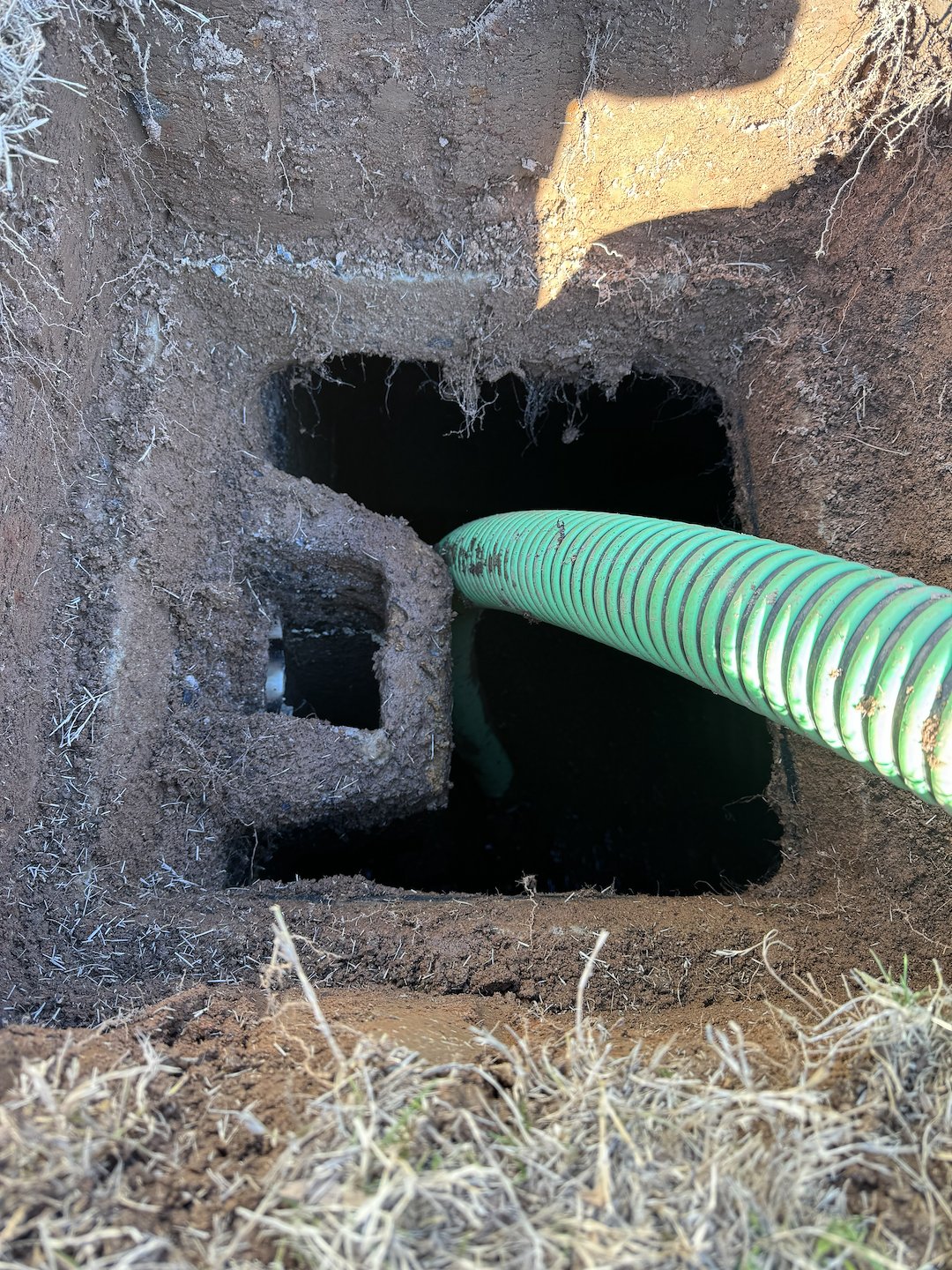 Our team at Bulldog Septic responded to a service call in Cumming, GA to locate and service a residential septic system. We carefully located and excavated the septic tank lids to gain access to the system. After performing a full septic tank pump-out, we discovered the main drain line was clogged and restricting proper flow.